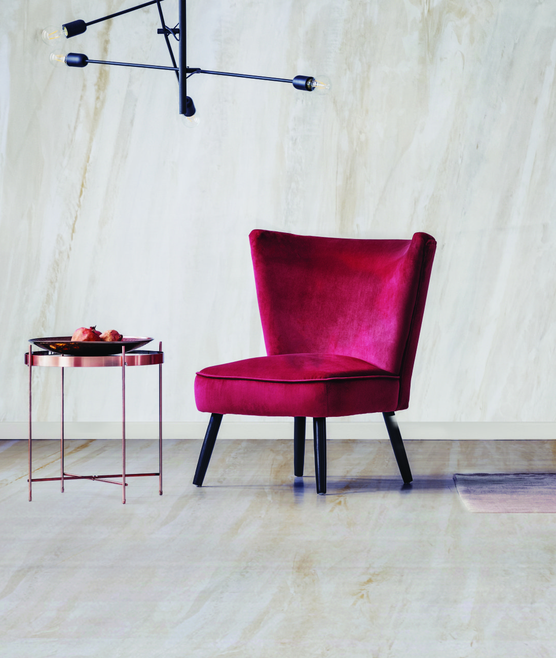 Revestimiento de material a base de cal apto para interiores y exteriores que reproduce el efecto del mármol desde el travertino al rayado al urbano al natural al estratificado a las vetas típicas de los mármoles reales.